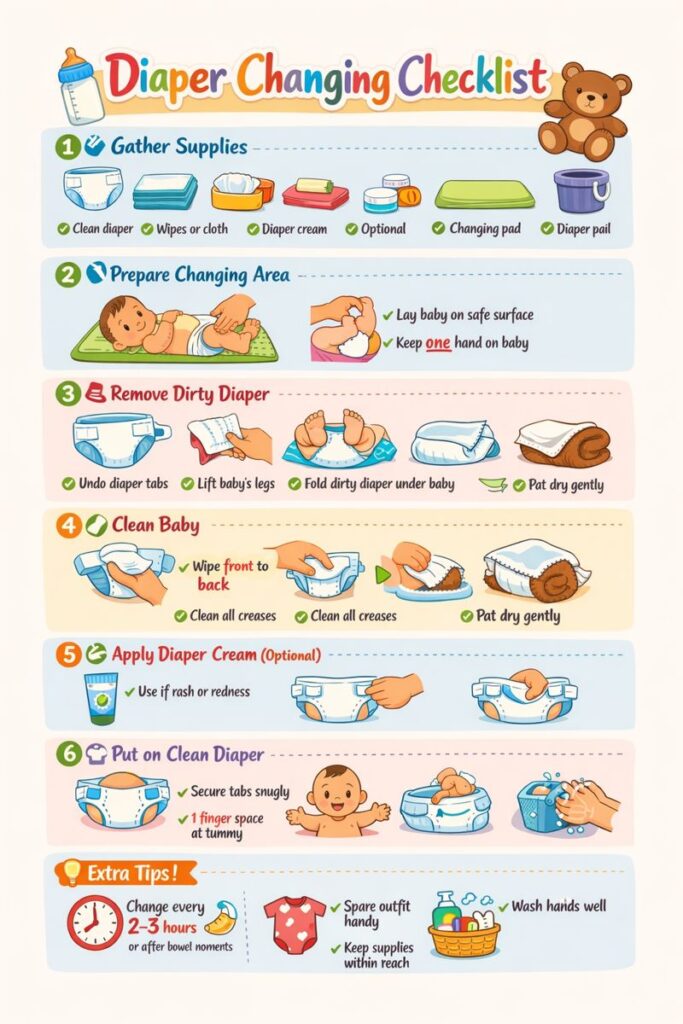 Step-by-step diaper changing checklist